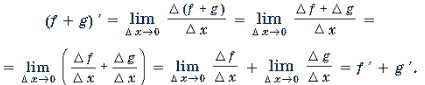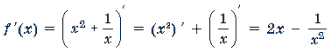 Пример 1. f '(x) = (x2 + x + 2) ' = (x2) ' + (x) ' + 2 ' = 2x + 1 + 0 = 2x + 1.
