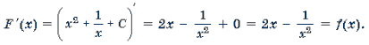 Пример 2. F '(x) = (2x2 – 3x + C) ' = (2x2) ' – (3x) ' + C ' = 2(x2) ' – 3(x) ' + 0 = 2*2x – 3 = 4x – 3 = f(x).