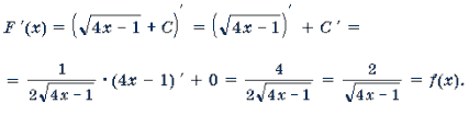 Тогда (F(x) + C) ' = F '(x) + C ' = f(x) + 0 = f(x), т. е. F(x) + C – тоже первообразная для f(x).