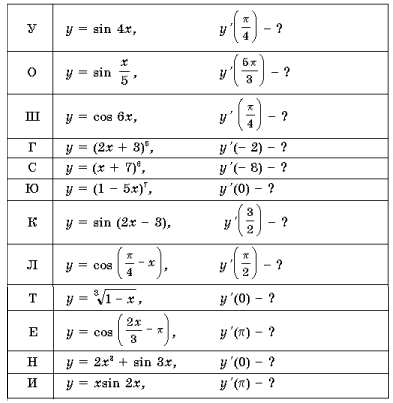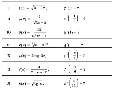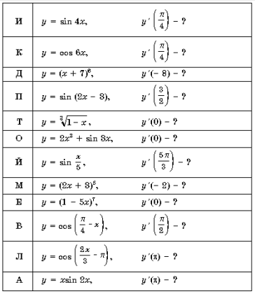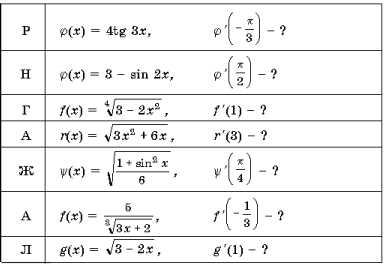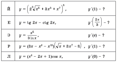 1. Решив эти примеры, вы расшифруете фамилию французского математика, который ввел термин «производная».