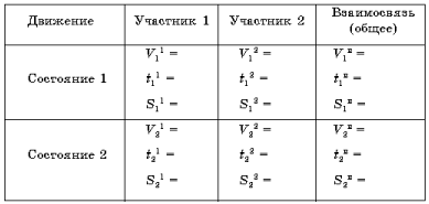 Движение каждого участника описывает три компоненты. Для того, чтобы найти взаимосвязь между ними, нам необходимо знать значения двух компонент. В традиционном подходе к решению текстовых задач для реализации этого положения вводятся неизвестные величины – x, y и т. д. Мы используем следующий подход. Пусть, например, S21 и S22 (указываем какие-либо из компонент) как будто бы известны и дальше работаем над задачей, исходя из этого.