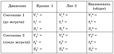 В зависимости от типа задачи таблица, описывающая ее систему, примет соответствующий вид. Например, для задачи на движение: