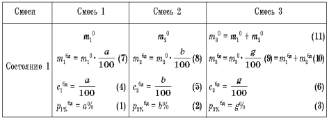 1. Сколько участников (сколько смесей участвует в задаче их названия)? – Три: смесь – 1, смесь – 2, новая смесь – 3.